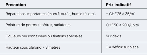 Chez FM Couleurs, nous vous proposons un service de peinture intérieure complet au prix transparent de CHF 30.–/m² (surface au sol).